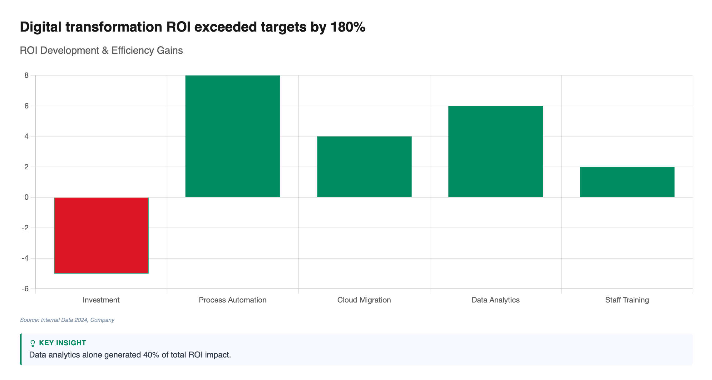 * Grundfundament mit Action Title, Datenvisualisierung und Key Insights - für finale MBB-Qualität empfehlen wir die Anreicherung mit weiteren Detailinformationen und ggf. einen professionellen Nachbau der Visualisierungsvorschläge mit M365 Tools