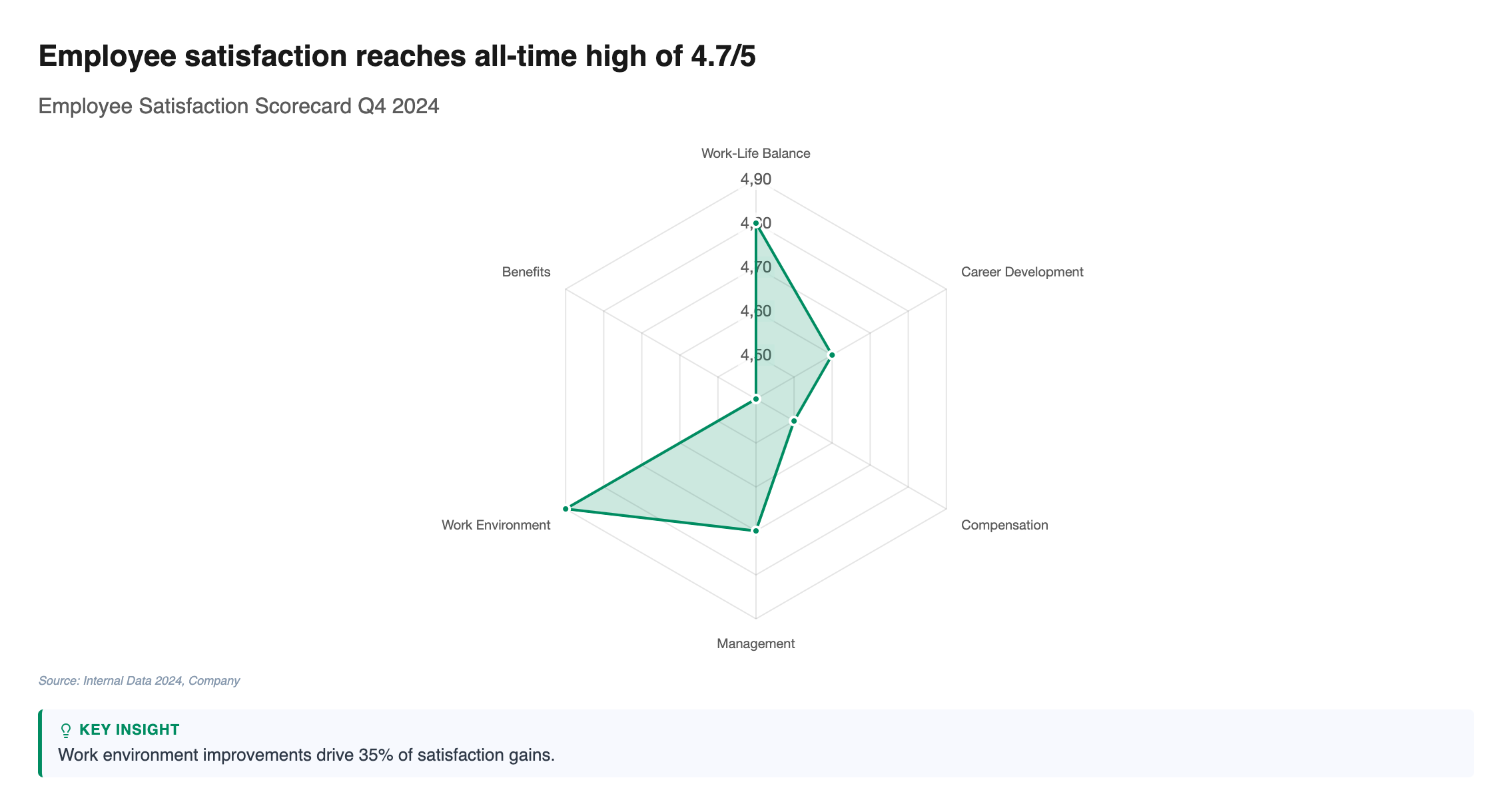 Aus dieser Eingabe wird automatisch eine interaktive Slide mit Radar-Chart, Key Insights und Datenanalyse generiert.